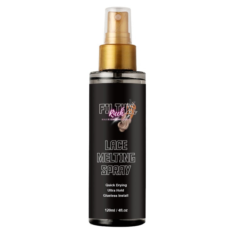 Secure your style with Filthy Ricch Melting Spray — the ultimate solution for flawless lace wig application. Our quick-drying, no-residue formula provides maximum hold with a lightweight, invisible finish. Perfect for daily use, it creates a natural hairline look without flaking or buildup. Easily removable without damaging your hair, and lightly scented for a fresh feel.